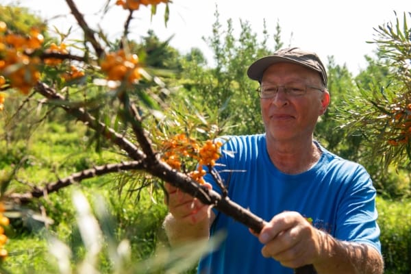 Voyant la retraite comme une possibilité de changement de carrière, François achète une terre à Pointe-Fortune afin de commencer la production d’argousier. Ayant travaillé longtemps dans le secteur financier, il anticipait avec impatience le moment où il commencera sa nouvelle carrière. Les premiers argousiers furent plantés en 2008 et la première récolte se fit en 2013. Un total de 1200 argousiers sont en production!